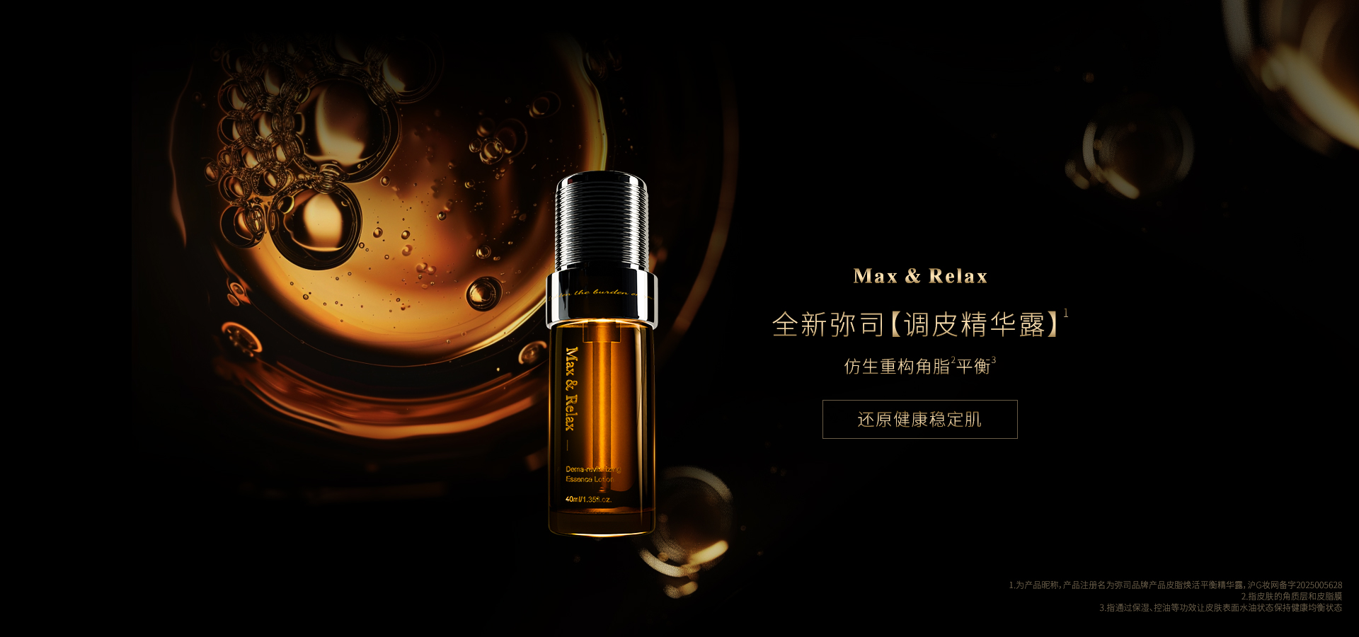 Max & Relax 弥司-产品由中国和法国科研共创并与调香师联合研发"重构科技 感官调愈品牌"。通过创新仿生重构科技与自然植粹的融合,辅以天然植物芳香精油调香,致力于为消费者提供兼具使用效果与感官疗愈体验的护肤体验。品牌秉承“汲自然之力,致肌肤之美"的护肤理念,并及以"汲致松弛"为口号,倡导天然主义与松弛的感官护肤,接纳本真。